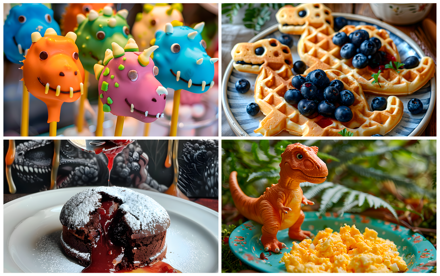 Von T-Rex-Rühreiern bis Vulkanküchlein – aufregende Gerichte für jede Mahlzeit, die Kindern schmecken und Freude bereiten.